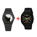 Upgrade your style with this premium combo featuring the Black Tiger & Black Marble Fiber Chain Watch (44g) paired with a sleek Square Rubber Watch.