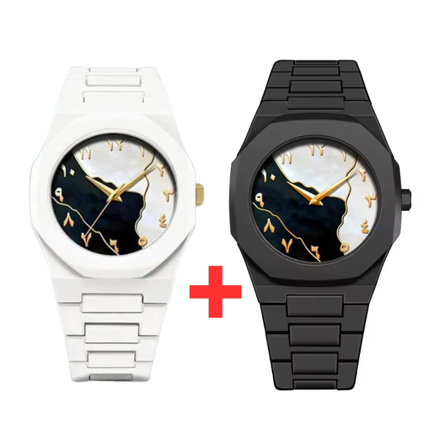 Experience modern luxury with this Arabic Aura Watch featuring a unique marble-inspired dial and golden accents. Its lightweight ceramic strap, precise quartz movement, and unisex design make it both stylish and durable — perfect for daily wear or gifting.