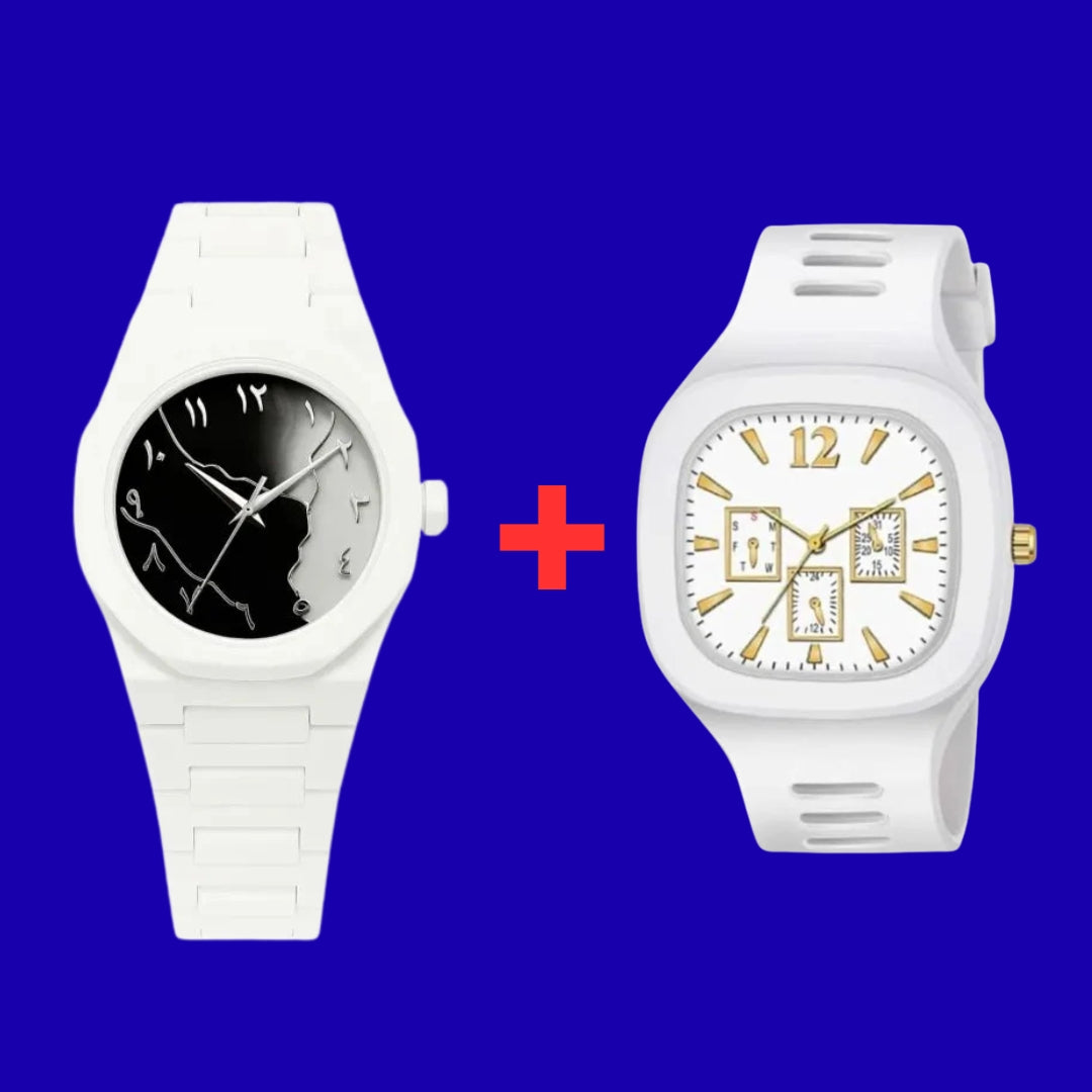White Tiger Marble Fiber Chain + Square Rubber Watch Combo